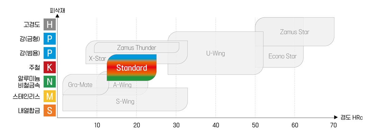 HRc 30 이하의 피삭재 가공에 적합