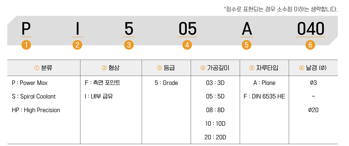 - 가공 깊이에 따라 내부 / 외부급유 타입의 드릴을 선정할 수 있도록 가공효율과 범용성 증대